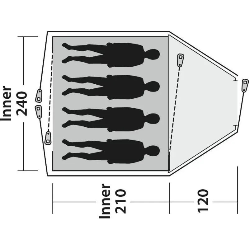 | Innertelt mål: | 210 x 240 x 125 cm |