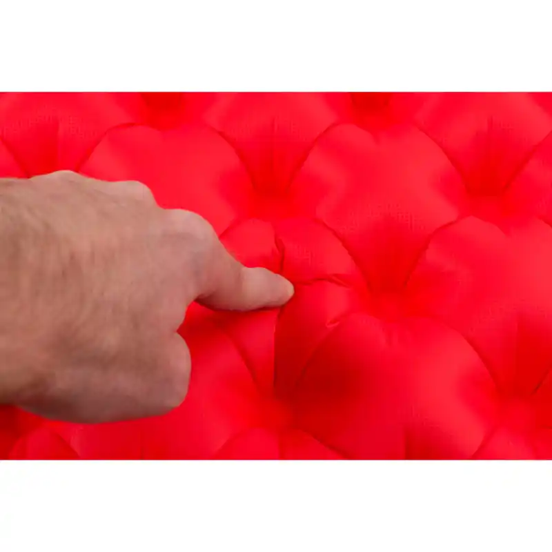 - Inkluderer låsesystem som fester Sea to Summit-puter til underlaget Konstruksjon med to uavhengige lag, noe som gir større følsomhet ved å fordele kroppsvekten og formen over flere celler. De to lagene er forskjøvet for å være jevnere og mer dempende.