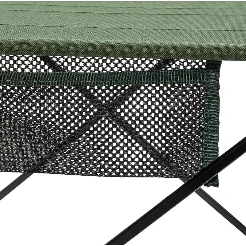 Bordet er laget av lette og holdbare materialer og er både raskt og enkelt å montere uten verktøy. På undersiden er det to praktiske nettlommer, og hele bordet kommer i en jevn oppbevaringspose.